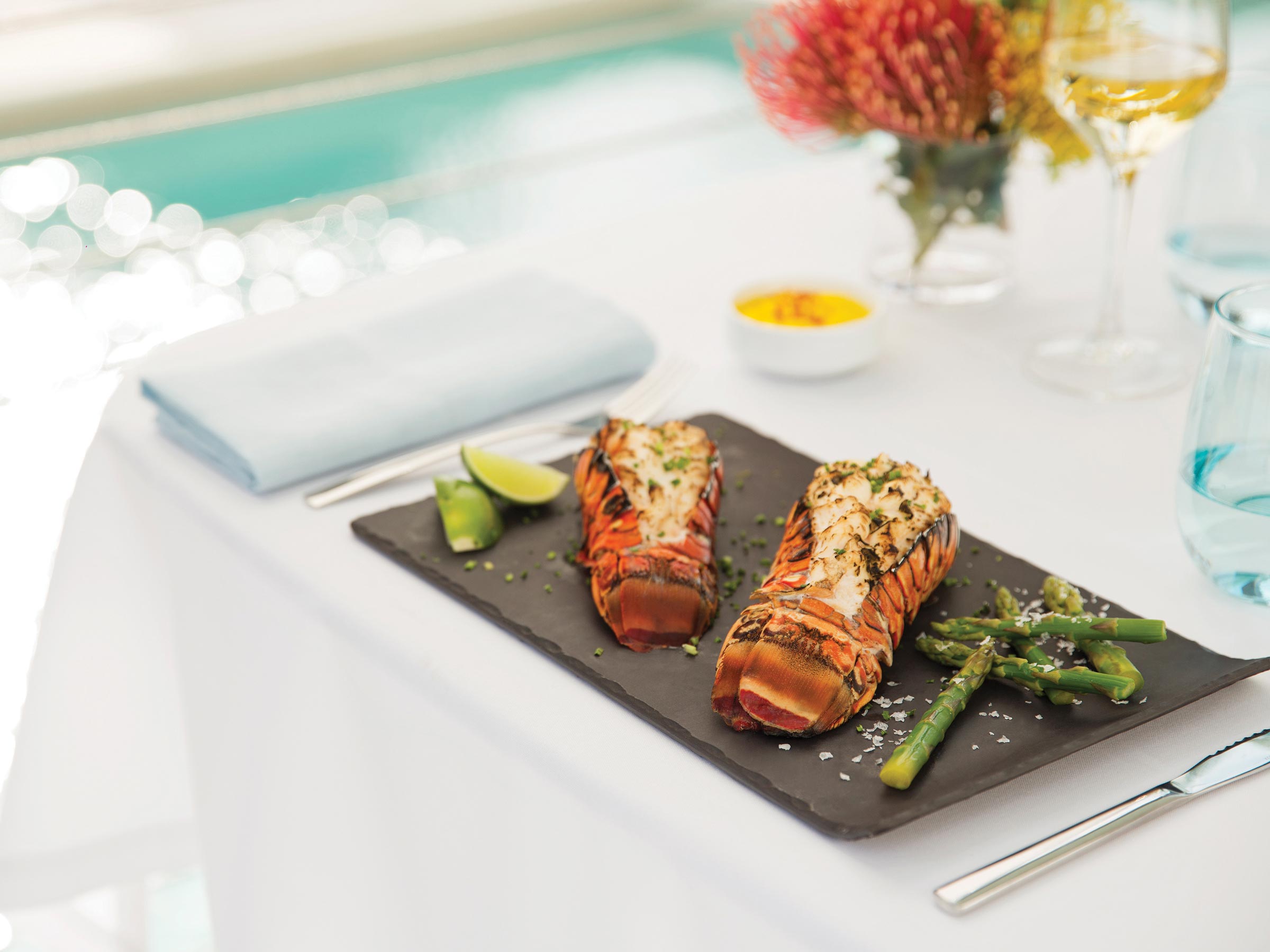 When is the seasonal restriction for lobster at the resort?